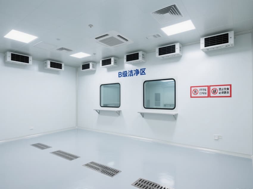 頂部嵌入式高效送風(fēng)口形成垂直層流,配合側(cè)下回風(fēng)系統(tǒng)實現(xiàn)每小時15-25次空氣置換,恒溫恒濕系統(tǒng)精準控制溫度(18-26℃)、濕度(45-65%)。不銹鋼潔凈門窗與傳遞窗采用高氣密性密封結(jié)構(gòu),嵌入式LED潔凈燈提供≥300lux均勻照明,全方位營造安全、精準的生物制藥生產(chǎn)基礎(chǔ)環(huán)境。