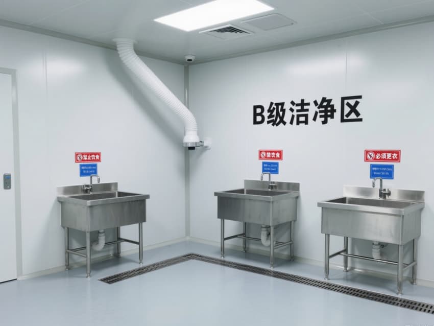 車間嚴格遵循萬級潔凈標準,每立方米空氣中≥0.5μm微粒數(shù)≤35.2萬個、菌落數(shù)≤10個。白色抗菌彩鋼板搭建的墻體與吊頂,具備抗菌、耐腐蝕、易消毒特性,墻面與地面的圓弧過渡設(shè)計徹底消除衛(wèi)生死角;淺灰防靜電環(huán)氧地坪則通過防靜電處理,避免靜電干擾生物活性物質(zhì)。?