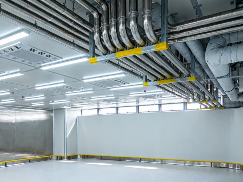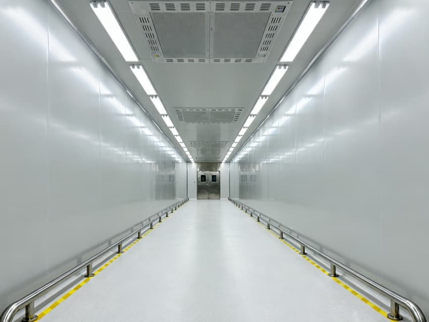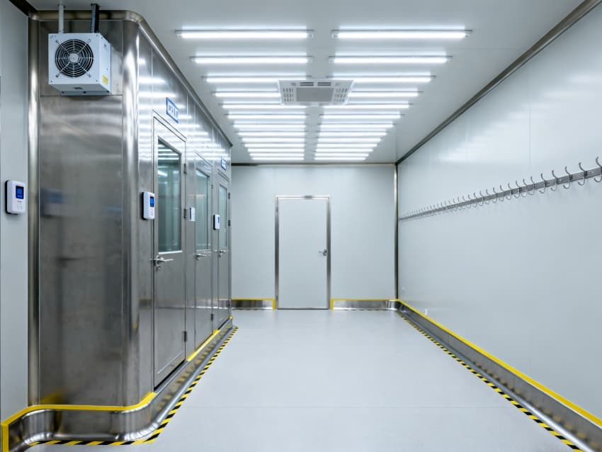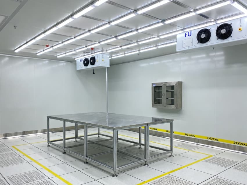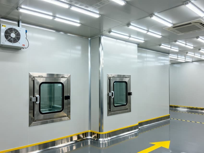 內(nèi)部按芯片工藝流程劃分光刻輔助區(qū)、晶圓預(yù)處理區(qū)、封裝過渡區(qū)等,各區(qū)域通過無塵傳遞艙銜接。車間嚴格執(zhí)行萬級潔凈標準(ISO8級),每立方米空氣中≥0.5μm微粒數(shù)≤352000個,采用初效-中效-高效-化學過濾四級凈化系統(tǒng),配合垂直層流送風,每小時空氣置換25-30次。墻面為防靜電不銹鋼板,地面是環(huán)氧樹脂自流平材質(zhì),溫度穩(wěn)定在23±1℃、濕度45±3%RH,同時配備靜電消除裝置,避免微粒與靜電影響芯片良率,完全契合芯片生產(chǎn)嚴苛要求。