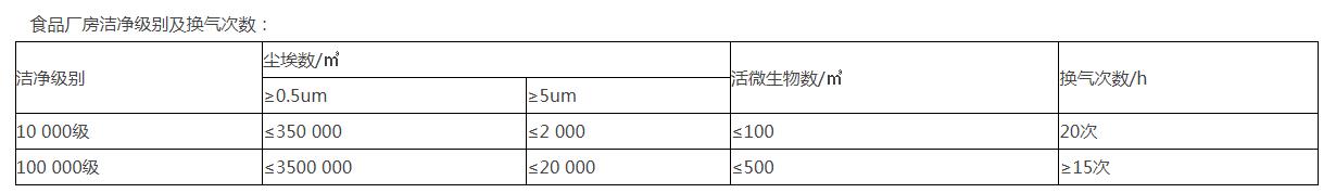 2、按照生產(chǎn)工藝和衛(wèi)生、質(zhì)量要求,劃分潔凈級別,具體級別及要求: