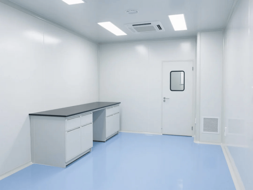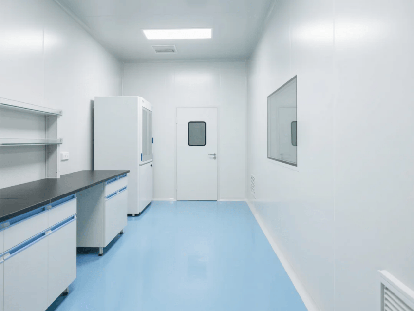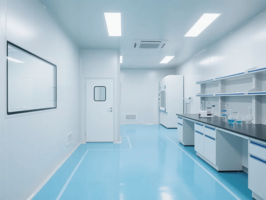 本方案采用生物科技極簡風格,嚴格遵循ISO14644-1Class6潔凈標準??臻g以純白抗菌彩鋼板墻體與淺藍環(huán)氧樹脂地坪構建主體框架,營造純凈、高效的檢測環(huán)境。墻體采用50mm厚醫(yī)療級抗菌彩鋼板,所有接縫處采用R30mm圓弧處理工藝,確保無衛(wèi)生死角。淺藍環(huán)氧地坪添加防滑顆粒,摩擦系數(shù)≥0.6,同時具備優(yōu)異的耐化性。