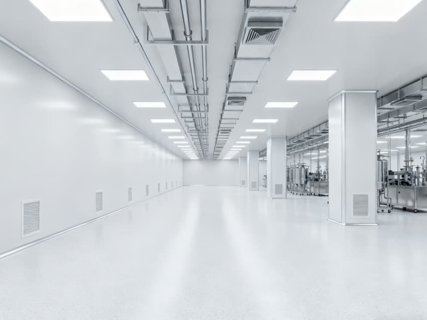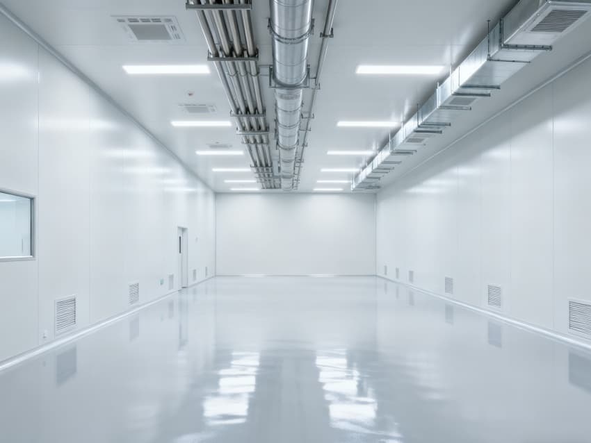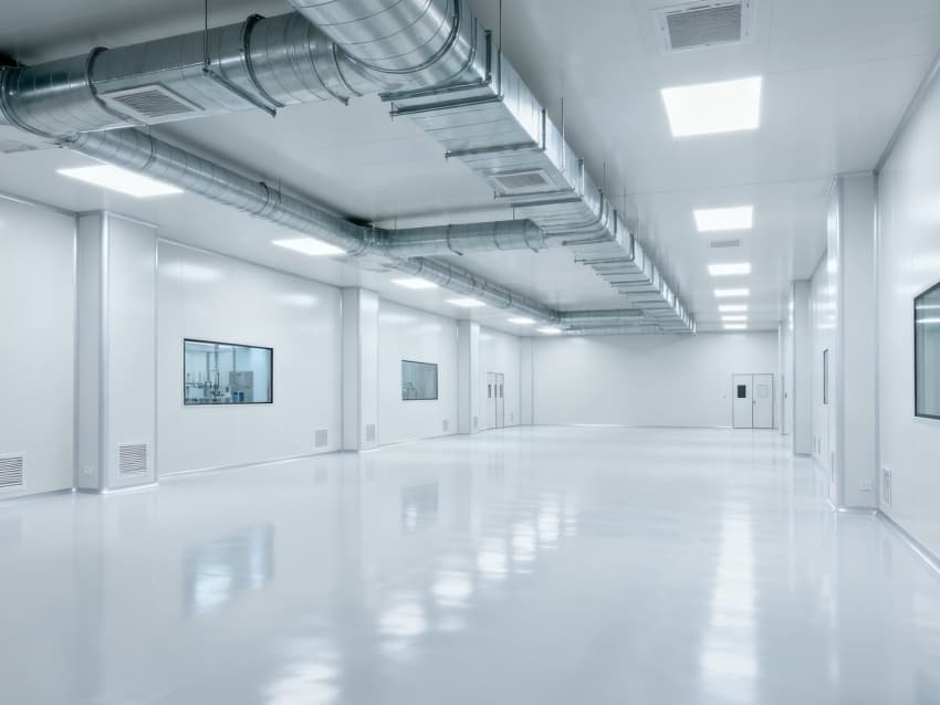 內(nèi)部6個核心生產(chǎn)車間均為無設(shè)備空曠布局,按萬級潔凈標(biāo)準(zhǔn)打造:地面鋪設(shè)無縫環(huán)氧自流平,墻面采用食品級不銹鋼墻板,陰陽角做圓弧處理,杜絕積塵死角;空間柱網(wǎng)間距均勻,預(yù)留充足設(shè)備安裝點位與運(yùn)維通道,滿足后續(xù)柔性生產(chǎn)需求;頂部吊頂整合新風(fēng)系統(tǒng)與防眩光照明模塊,風(fēng)口布局對稱規(guī)整,進(jìn)一步強(qiáng)化空間的空曠感與規(guī)整性,為生物制藥生產(chǎn)的潔凈性、安全性與可擴(kuò)展性奠定堅實基礎(chǔ)。