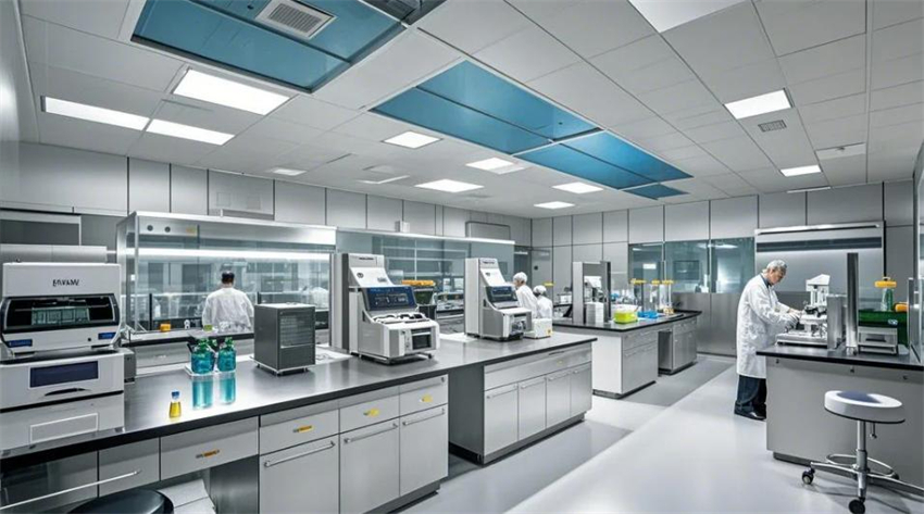 1000平方米生物實(shí)驗(yàn)室整體裝修,現(xiàn)代科技風(fēng)格,實(shí)驗(yàn)室分為核心實(shí)驗(yàn)區(qū)、設(shè)備區(qū)、樣品存儲(chǔ)區(qū)和辦公區(qū)。核心實(shí)驗(yàn)區(qū)占50%,設(shè)備區(qū)占30%,樣品存儲(chǔ)區(qū)占10%,辦公區(qū)占10%。核心實(shí)驗(yàn)區(qū):防靜電環(huán)氧地坪(淺灰色),白色彩鋼板墻面和天花板,頂部高效過濾器(HEPA),不銹鋼實(shí)驗(yàn)臺(tái),設(shè)備排列整齊。設(shè)備區(qū):精密儀器整齊排列,地面為防靜電PVC地板(淺色)。樣品存儲(chǔ)區(qū):冷藏柜和樣品架整齊,溫濕度控制。辦公區(qū):玻璃隔斷,現(xiàn)代簡約辦公桌。整體色彩:白色、淺灰色、科技藍(lán)點(diǎn)綴。
