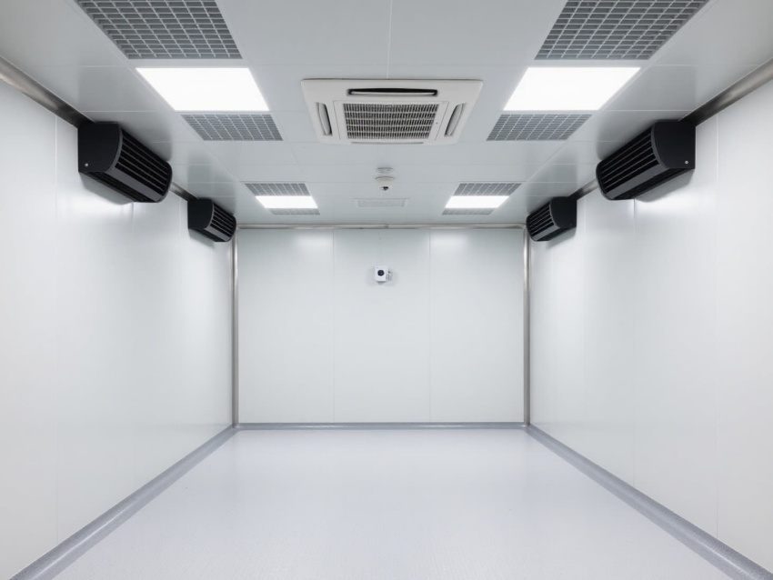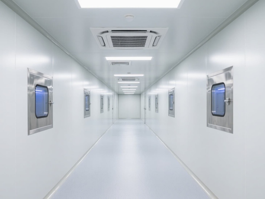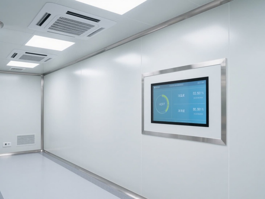車間以白色抗菌彩鋼板為主體建材,搭配淺灰防靜電地坪,墻面與地面的圓弧過渡設(shè)計(jì)消除衛(wèi)生死角,便于徹底清潔消毒。頂部嵌入式高效送風(fēng)口形成垂直層流,配合側(cè)下回風(fēng)系統(tǒng),實(shí)現(xiàn)每小時(shí)15-25次的空氣置換,持續(xù)維持潔凈正壓。?